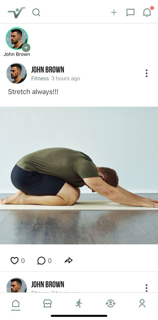 Vetra’s home feed is designed for athletes. Share your achievements, post progress photos, and highlight milestones.